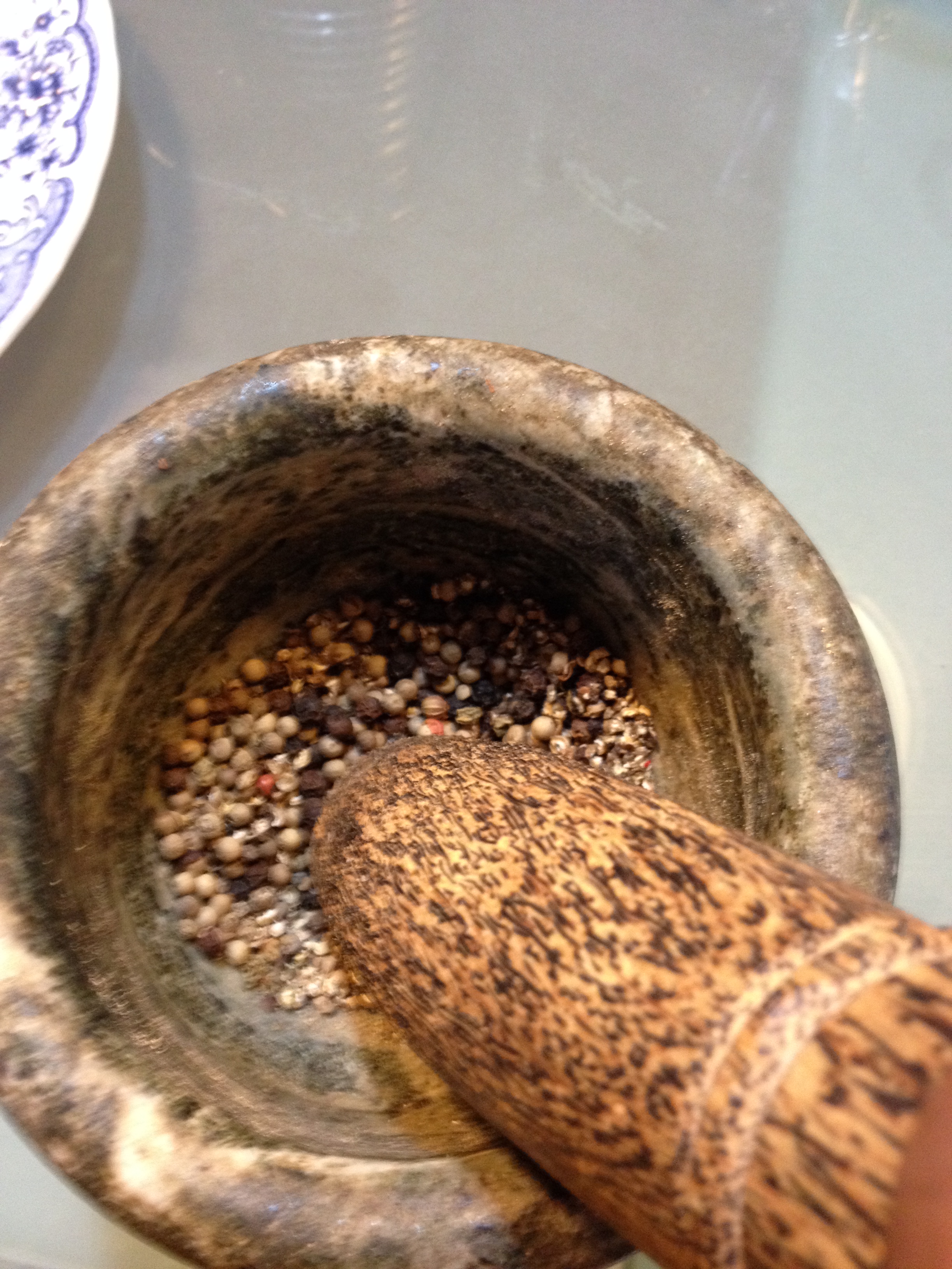 Also, I eat a lot of pepper (by my host’s standards), so they laugh at me. We grind the peppercorns by hand with something that resembles a small cudgel (a baby version of the one Cain used to kill Abel) and stone chalice.