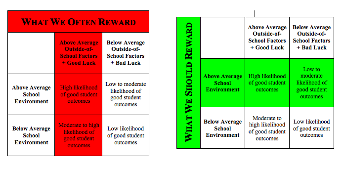 2) A second core purpose of teacher evaluation is to help evaluators make personnel decisions. Relative to the evaluation system described above – one that focuses on actions over which a teacher has control – making VAM results a defined percentage of teacher evaluations does not help us with this purpose, either. Suppose a teacher gets a bad VAM result. If that result is consistent with classroom observation data, the quality of assigned work, and various other elements of the teacher’s practice, an evaluator shouldn’t need it to conclude that the teacher is ineffective.