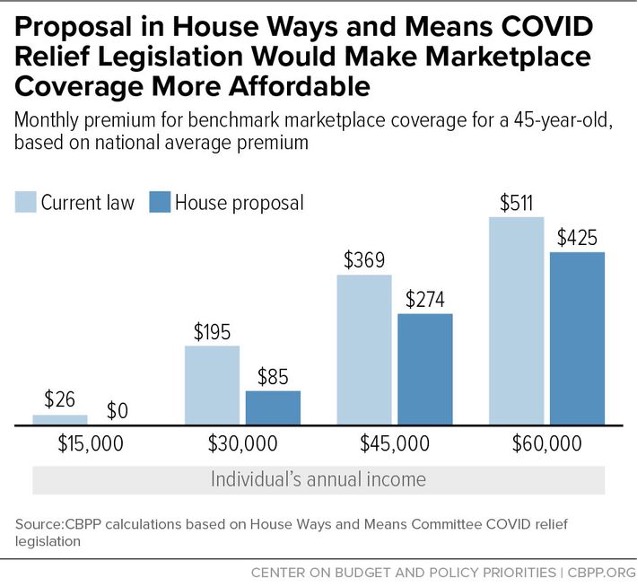 Health policy analysts typically focus on monthly health care premiums as the primary indicator of health plan affordability. In a February column excitedly touting the ARP’s temporary subsidy improvements, for example, New York Magazine’s Jonathan Chait included the graph below from my former colleagues at the Center on Budget and Policy Priorities (CBPP). It shows that the new subsidies should be saving people making between $30,000 and $60,000 roughly $100 per month on their premium payments.
